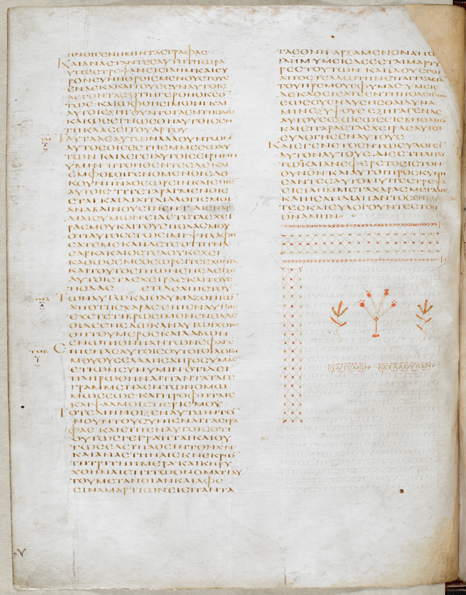 A decorative panel, or ‘endpiece’, following the Gospel of St Luke in the Codex Alexandrinus. Codex Alexandrinus (Gregory-Aland 02), Bible in four volumes: Volume 4 (New Testament), 5th century, parchment codex, 32 x 28 cm (The British Library)